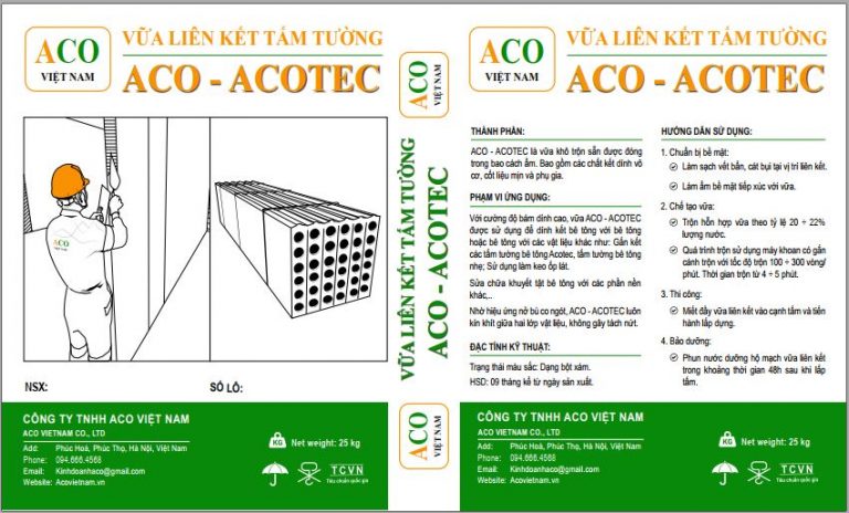VỮA LIÊN KẾT TẤM TƯỜNG ACO-ACOTEC Vữa liên kết tấm tường ACO-ACOTEC là vữa khô trộn sẵn được sản xuất dựa trên cơ sở: xi măng pooclang, chất độn mịn … Đọc tiếp Vữa liên kết tấm tường ACO-ACOTEC